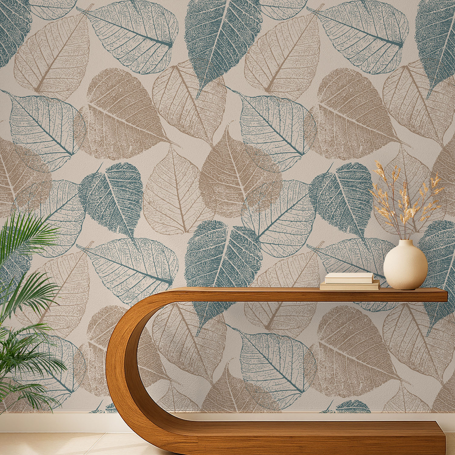 Leafy Serenade in Beige and Blue