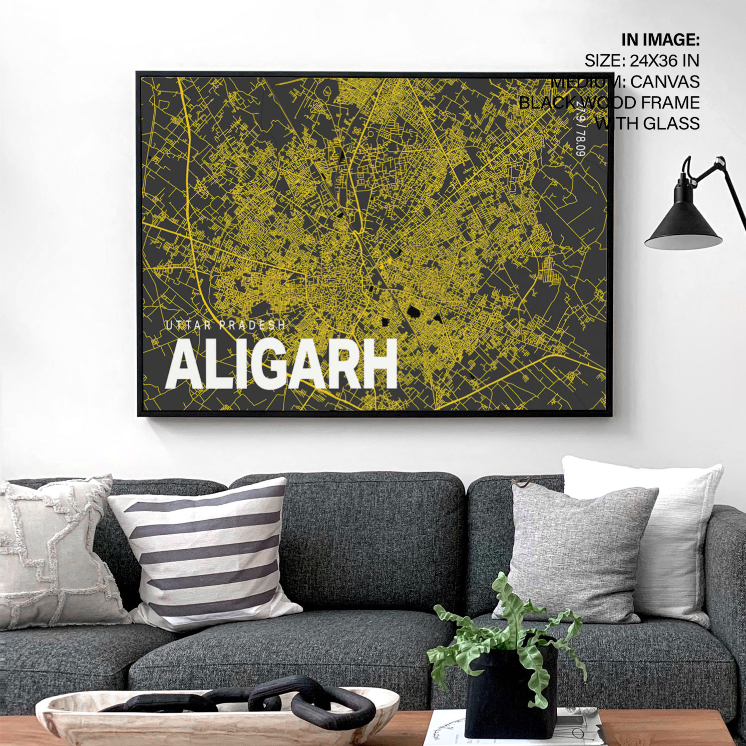 Yellow poster map of aligarh
