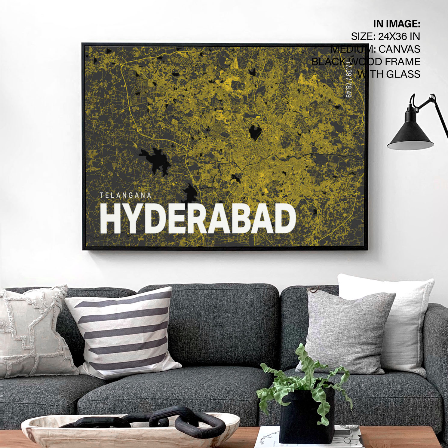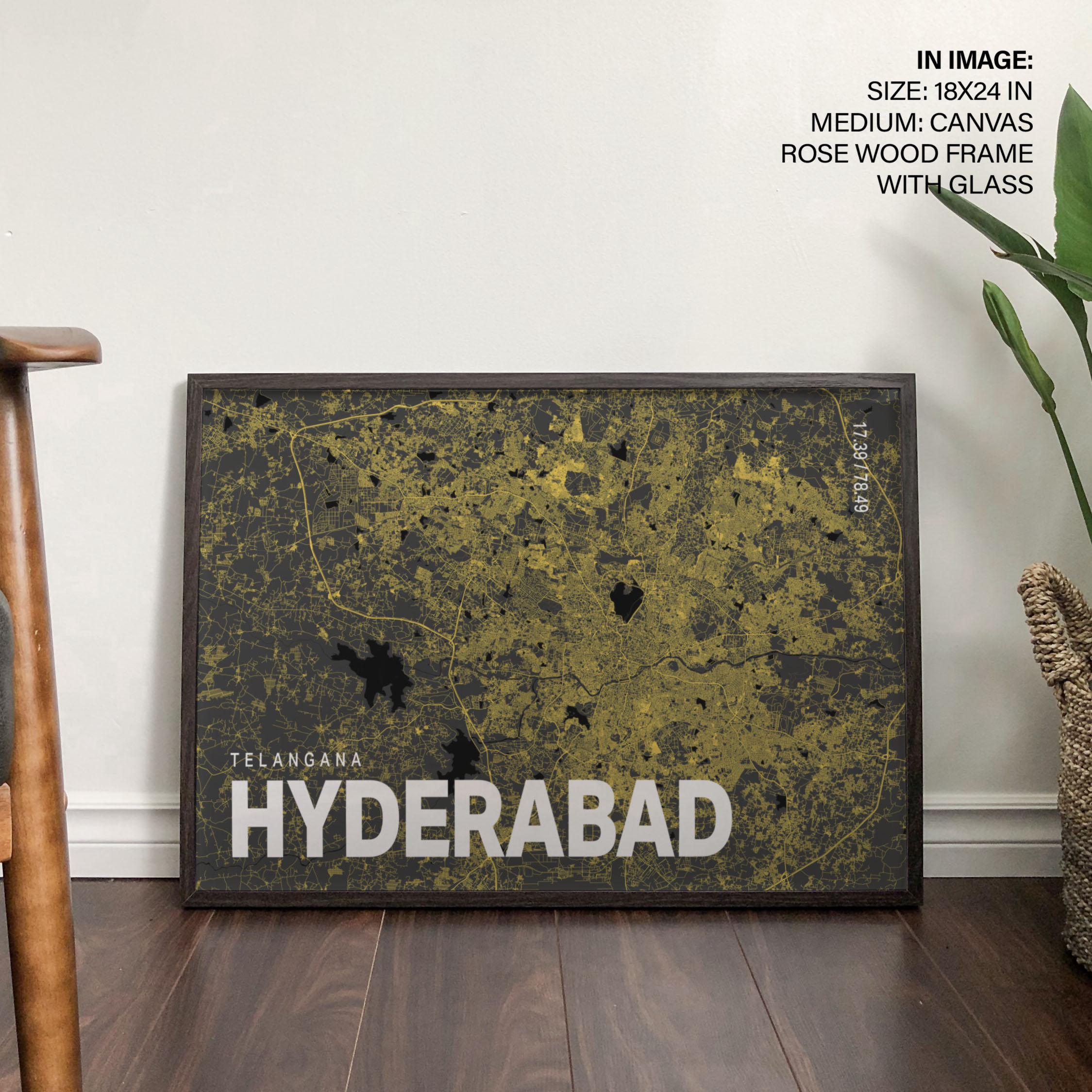 Yellow poster map of hyderabad