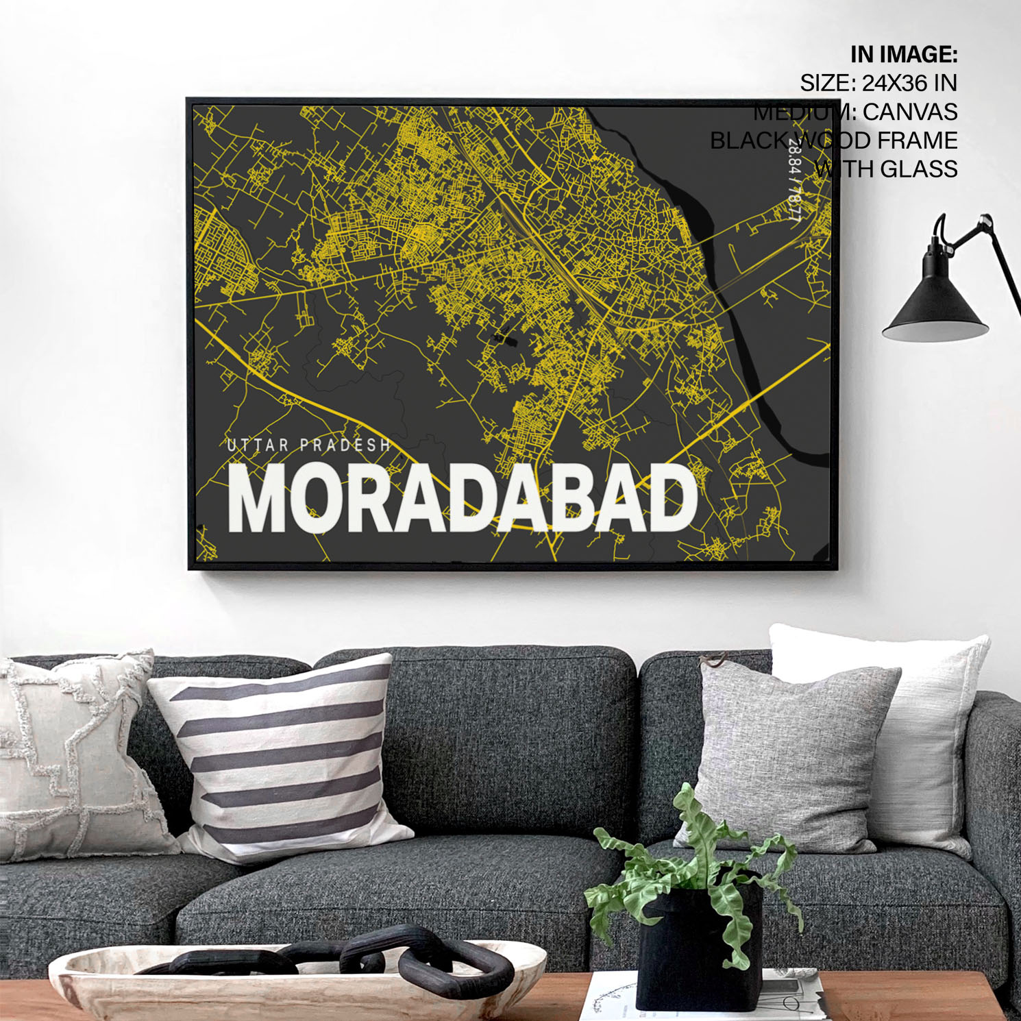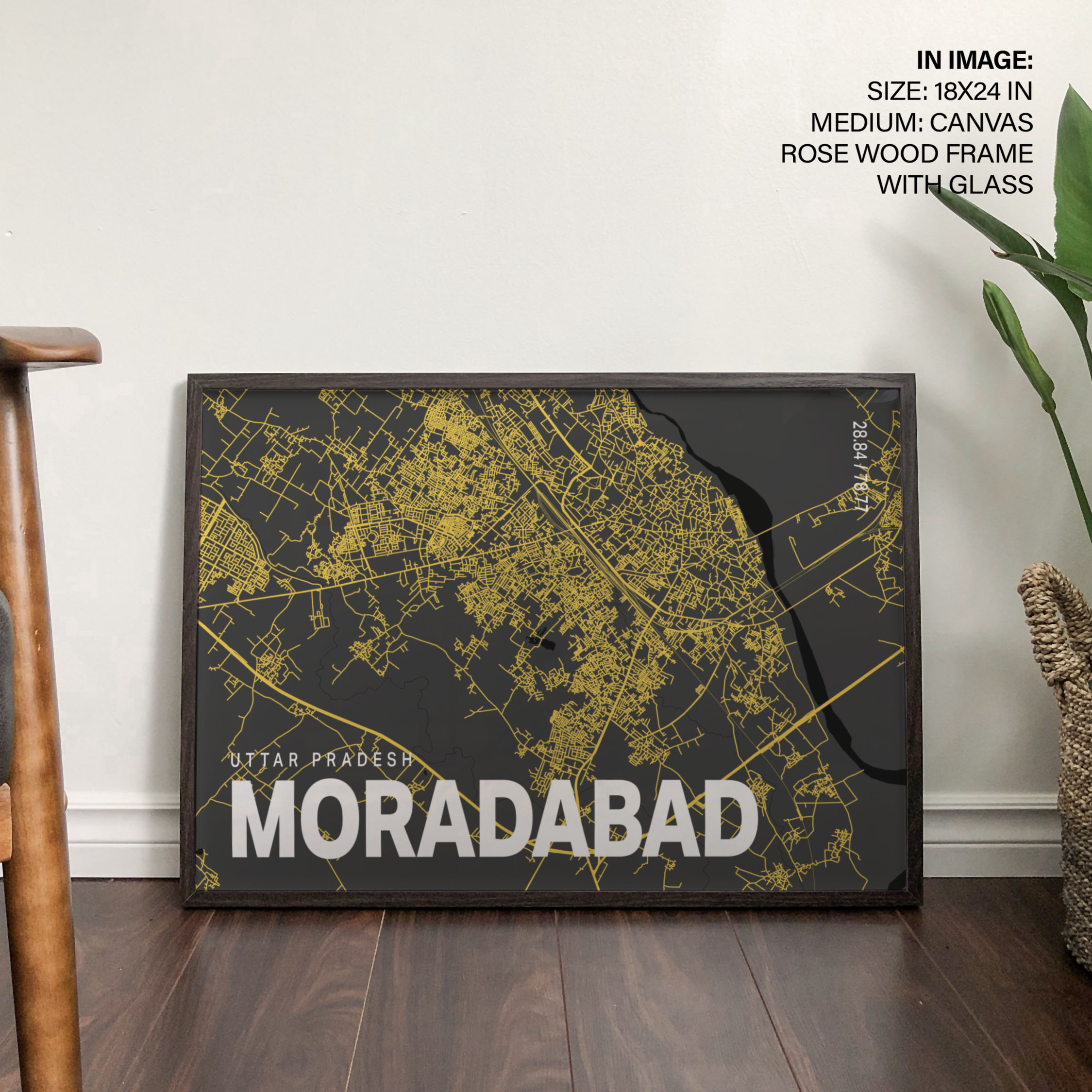 Yellow poster map of moradabad