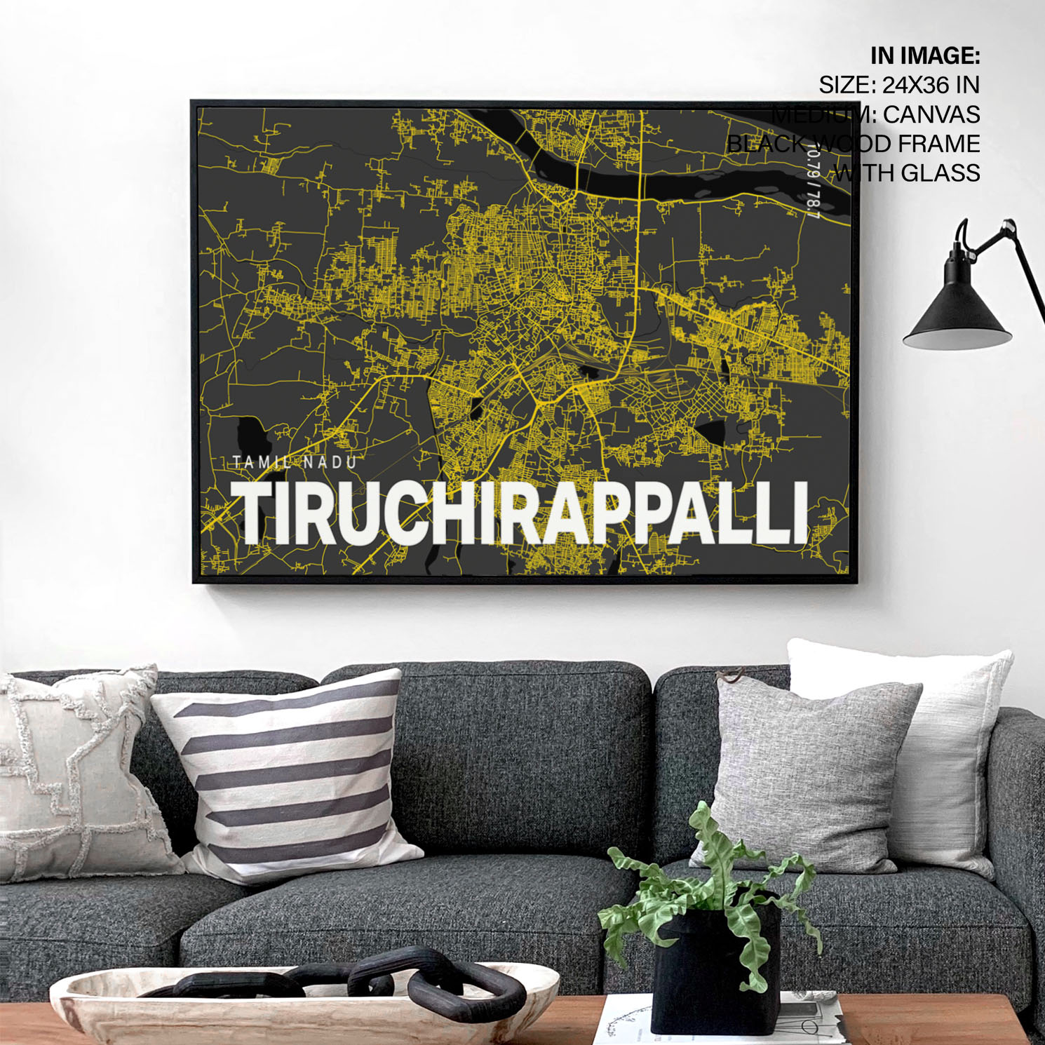 Yellow poster map of tiruchirappalli